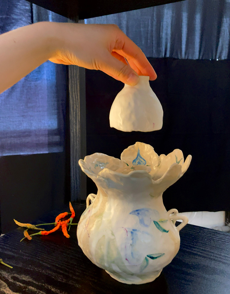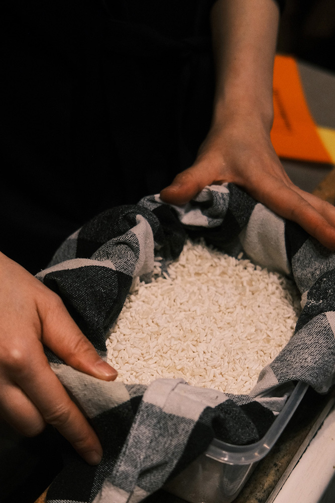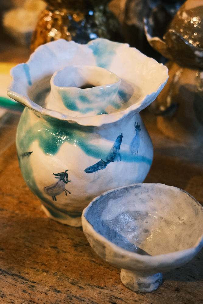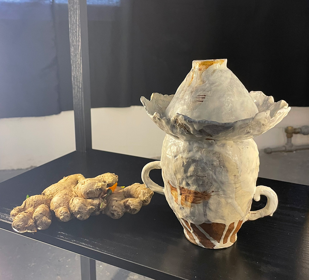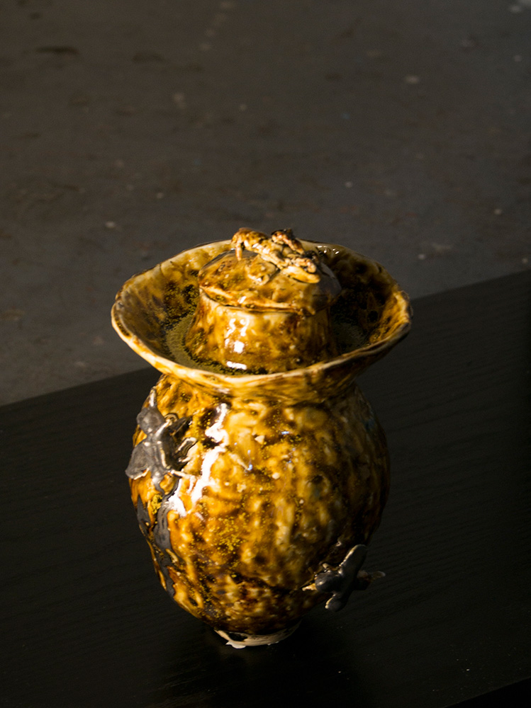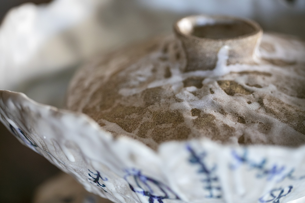 Ceramic, graze, recipe drawing on paper, honey, herb, glutinous rice, yeast ball